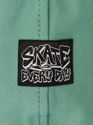 Толстовка с длинными рукавами, притачным поясом и манжетами. Манжеты выполнены из полотна с добавлением лайкры, пояс выполнен из основного полотна. Капюшон со шнурком и подкладкой, верхняя часть декорирована вязаной нашивкой. Перед декорирован принтом "Катайся каждый день".