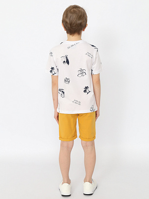 Футболка для мальчика с коротким рукавом из набивного полотна. Горловина обработана притачной бейкой из рибаны с лайкрой. Перед декорирован принтом.