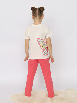 Пижама для девочки (футболка, брюки) экрю