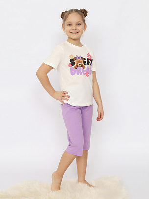 Пижама для девочки (футболка, бриджи) экрю