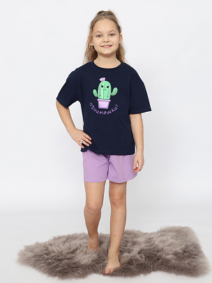 Пижама для девочки (футболка, шорты) темно-синяя
