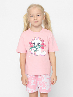Комплект для девочки (футболка, шорты) розовый