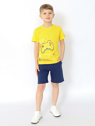 Футболка с коротким рукавом. Горловина круглая, обработана узким воротником из полотна с эластаном. Перед оформлен принтом.